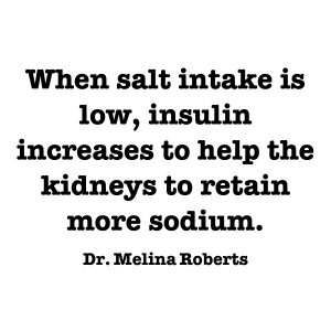 When salt intake is low, insulin increases to help the kidneys to retain more sodium. When insulin is high, this can contribute to an insulin resistance picture.